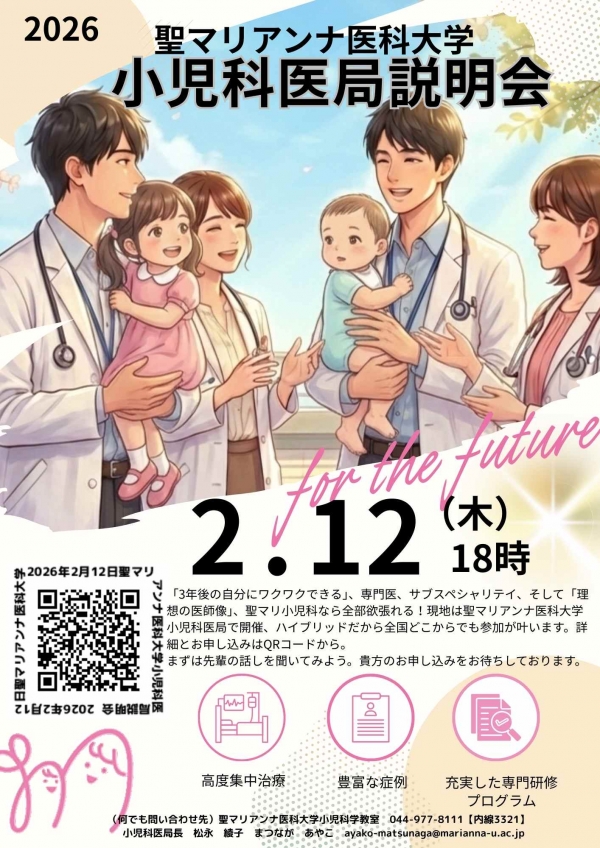 しています。こども達が健康で過ごすことは我われの未来を形作ります。本セミナーで最新の医療情報を発信し討論します。院内・院外・全国へ向けて発信いたします、このセミナーを交流の場としてつながりを深めお互い学び合う機会を提供します。皆様のおかげで登録者 800名突破! 聖マリアンナ医科大学小児科から全国へ配信。